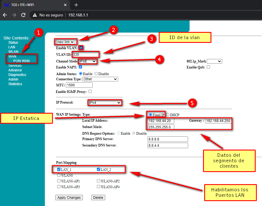 En la pestaña WAN agregamos una nueva configuración y ponemos nuestros datos.
