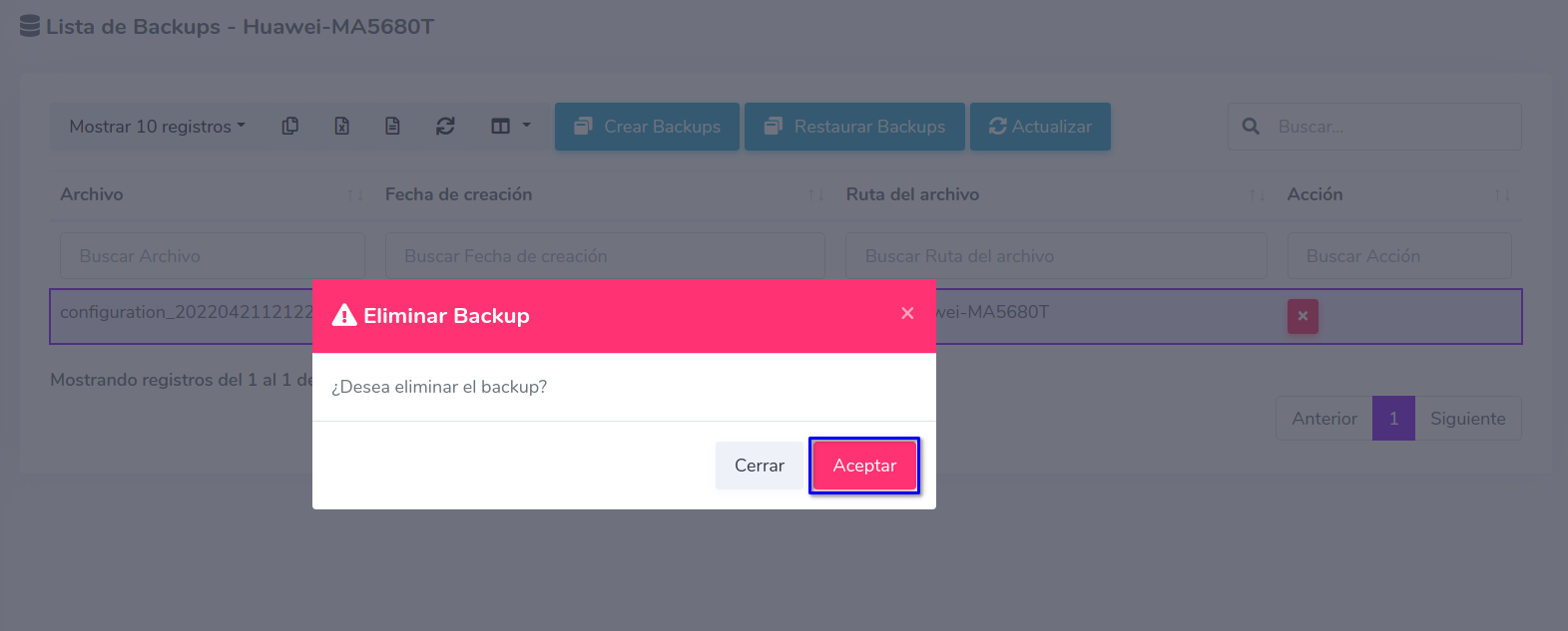 Eliminar respaldo desde AdminOLT