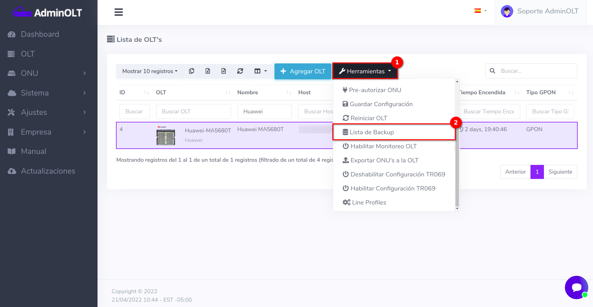 3 Verificar el respaldo en AdminOLT