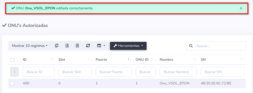 Cambiar ONU Vsol EPON de Puerto