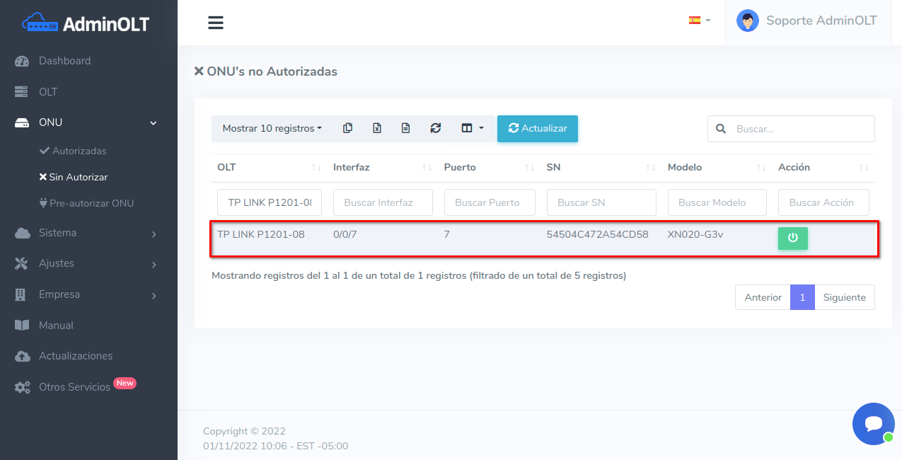 1Autorizar ONU y seleccionar "Crear perfil genérico"