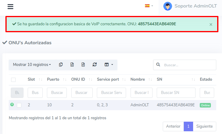 2Completamos la información para la configuración básica VOIP que tendrá la ONU.