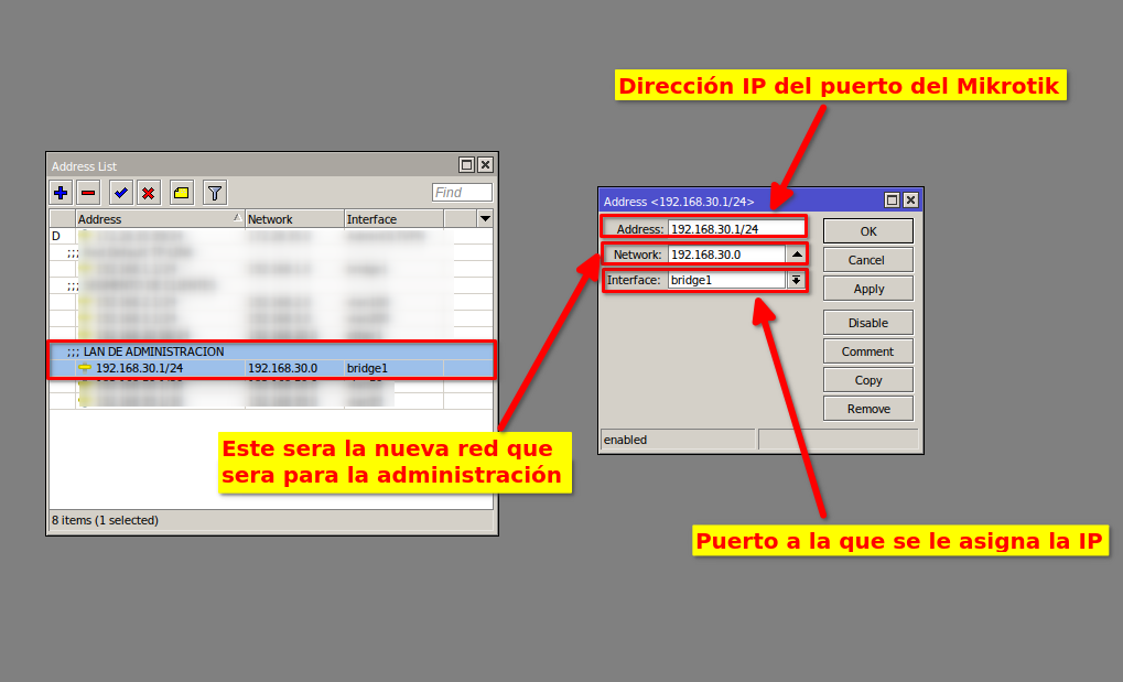 3Direccionamiento IP para red de administración. Este será la IP que utilizaremos para trabajar nuestra nueva red de administración.