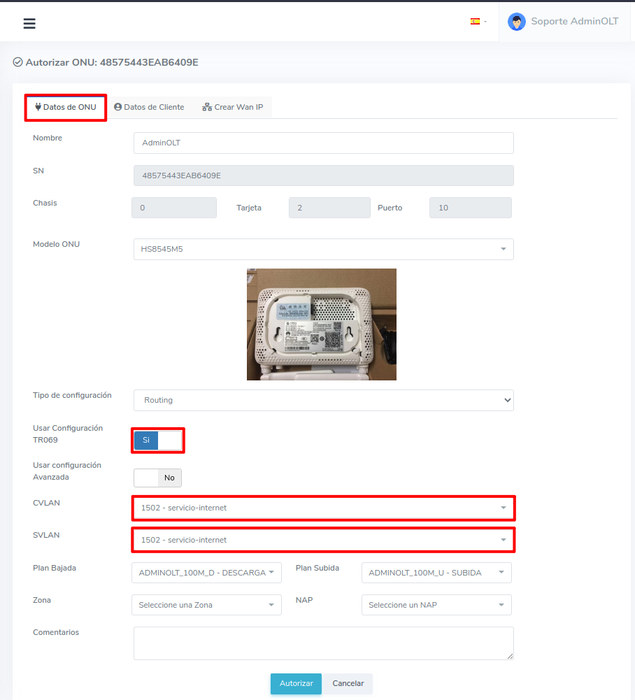 Autorizar ONU con TR069
