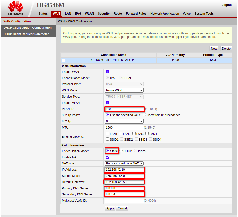 - ¿Como crear una configuración WAN IP de tipo STATIC?