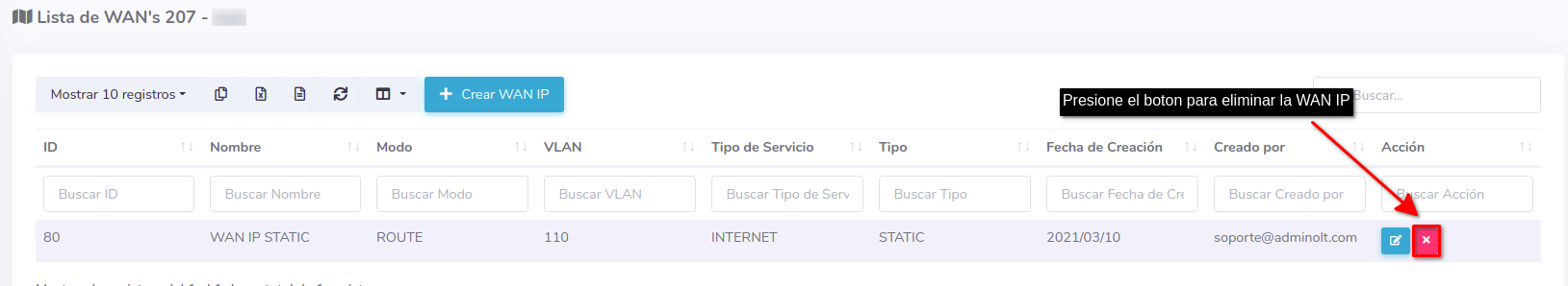 - ¿Como eliminar una configuración WAN IP?