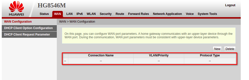 Al entrar a la interfaz de la ONU podremos ver que la configuración WAN se ha creado.