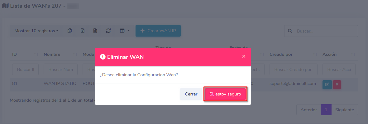 ¿Como eliminar una configuración WAN IP?