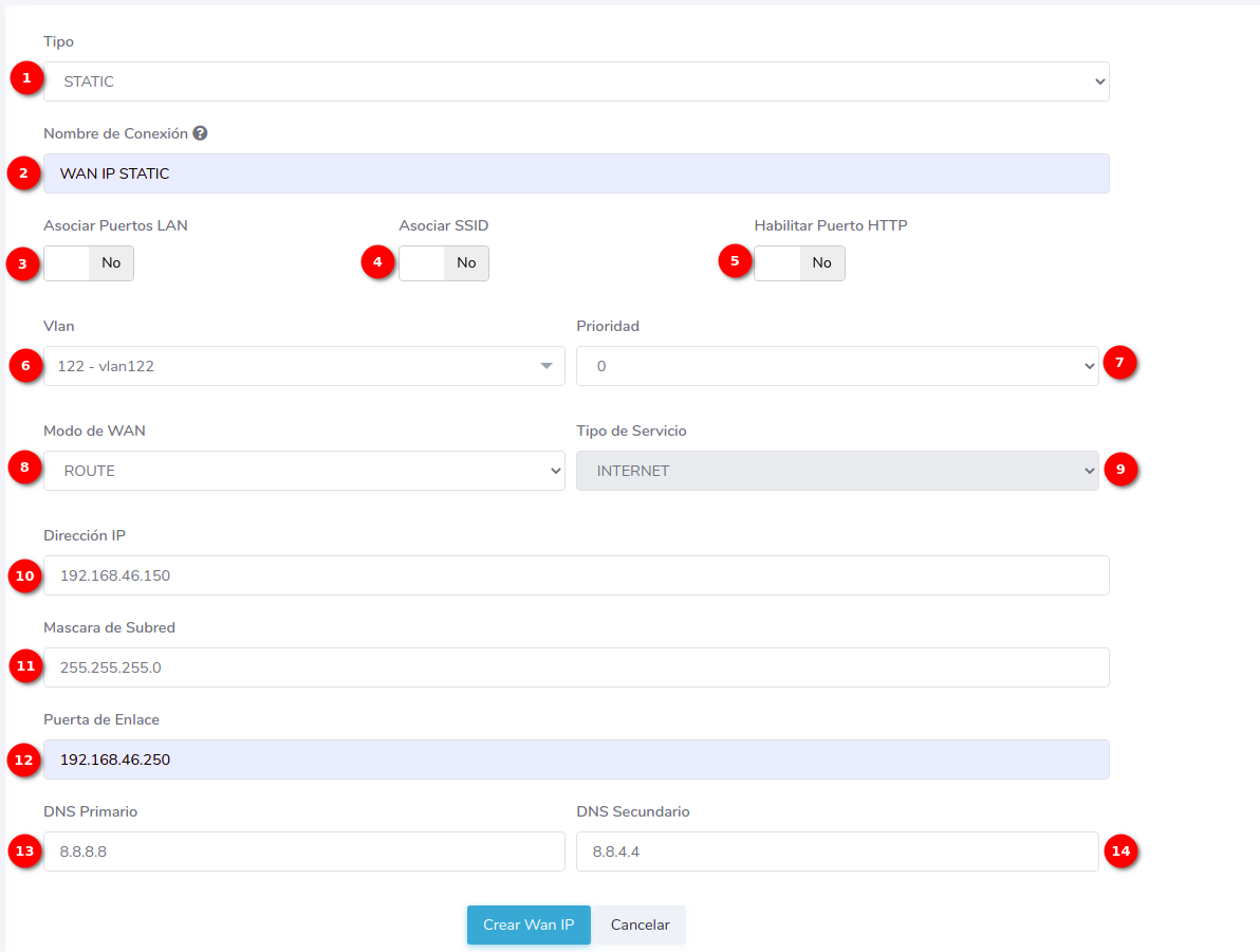 - ¿Cómo crear una configuración WAN IP de tipo STATIC?