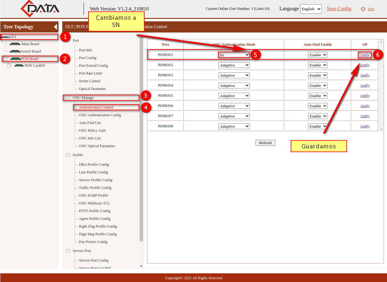 Si desea probar la autorización desde la interfaz de la OLT puede seguir los pasos del manual Configuración Inicial C-Data utilizando método Manual de ForoISP