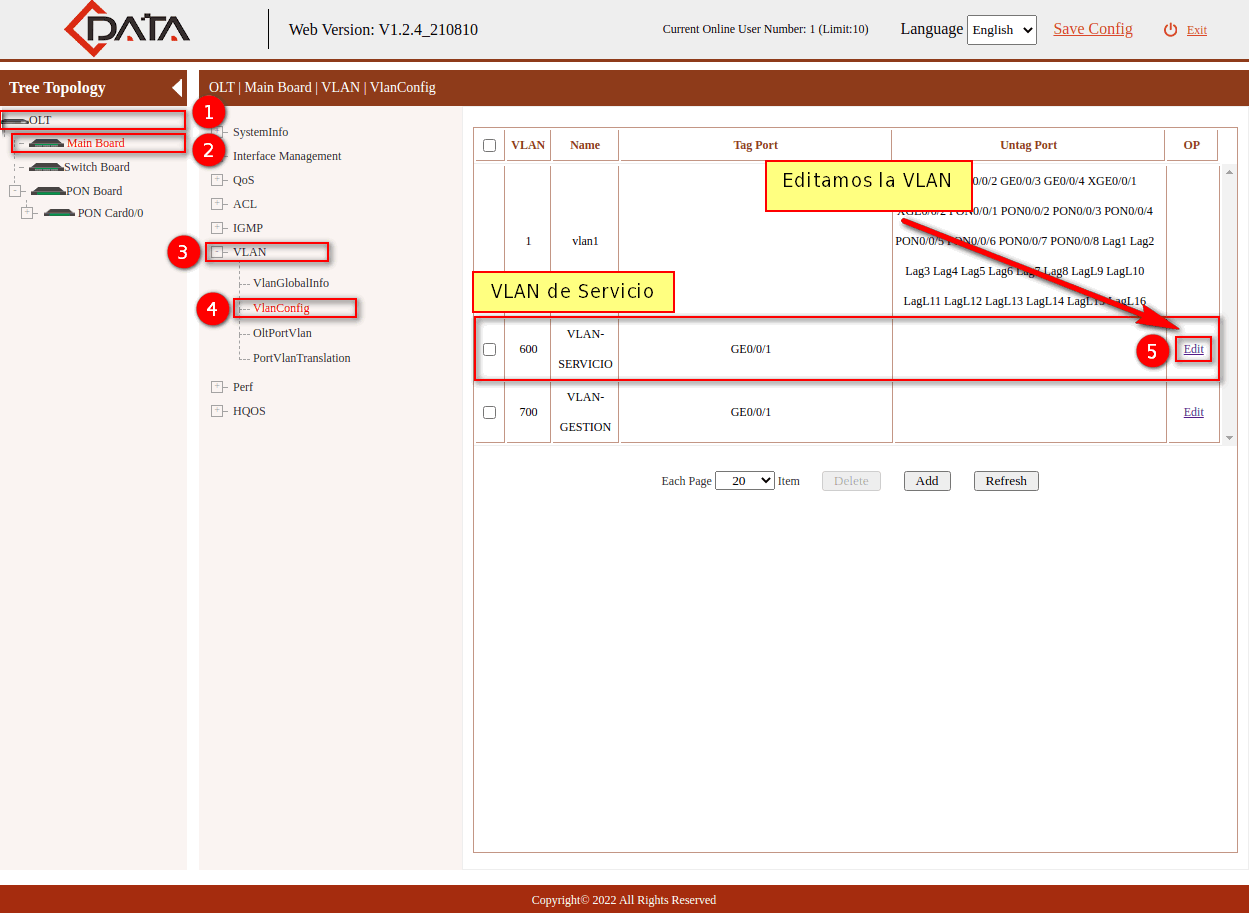1 Ir a Lista de Puertos PON de nuestra OLT