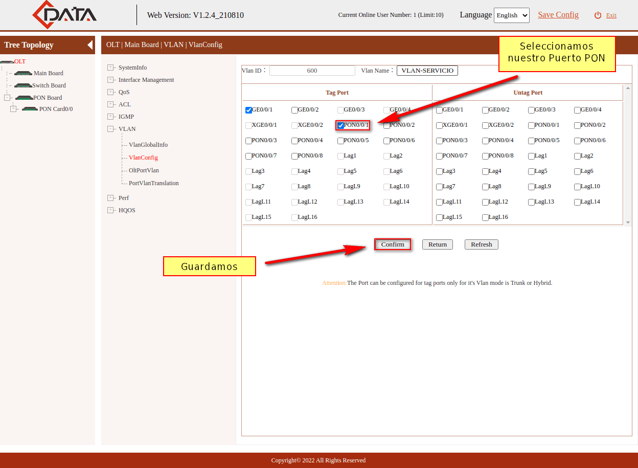 Esta configuración aun no esta disponible en AdminOLT, pero esto se puede hacer desde la interfaz de la OLT