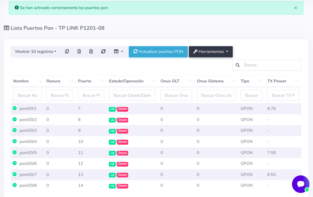 1 Ir a Lista de Puertos PON de nuestra OLT