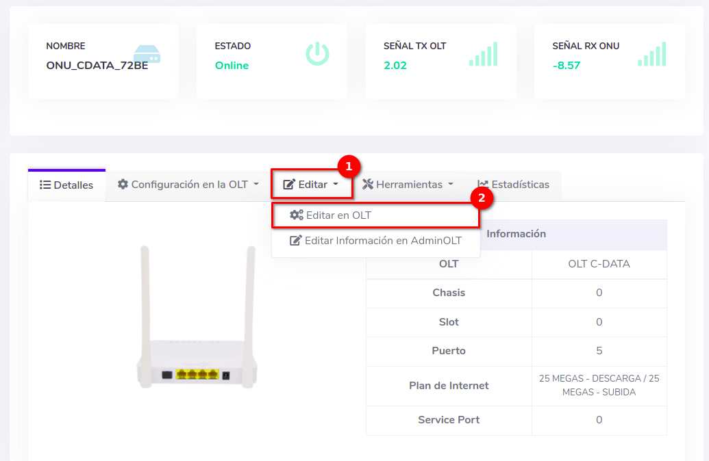 - Editar ONU en AdminOLT desde Detalles de ONU