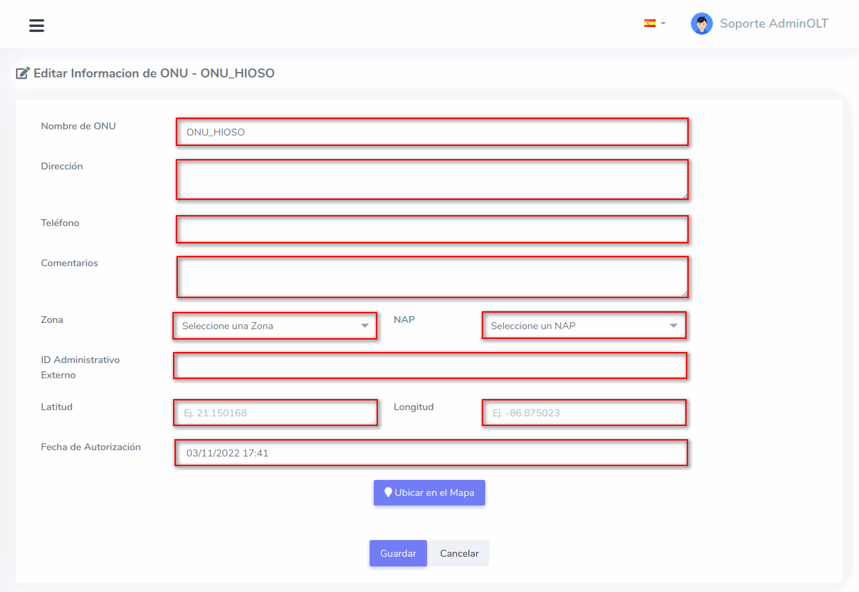 - Editar ONU en AdminOLT desde Lista de ONU's Autorizadas