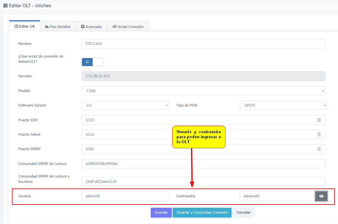 Para poder trabajar la OLT es necesario que se haya creado un usuario tipo administrador para que el sistema pueda ingresar a su Olt y poder hacer la autorización de las ONU’s
